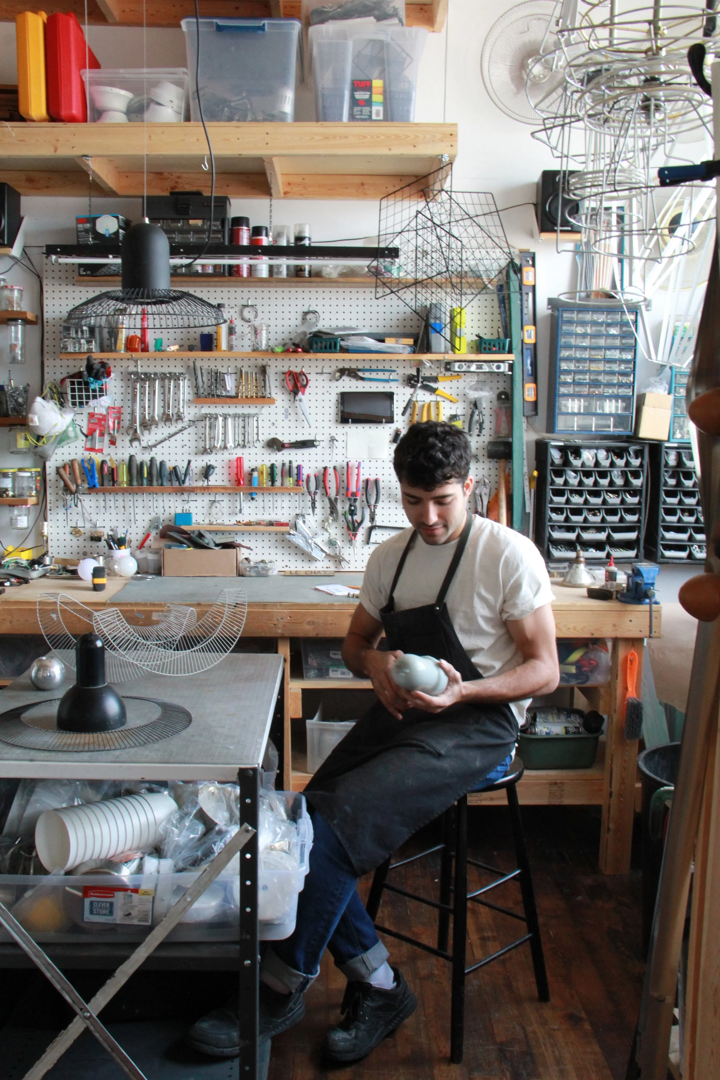 Depuis 2017, studio botté relève le défi de transformer des objets délaissés et des matériaux rejetés en créations esthétiques et responsables. Situé à Montréal, notre atelier/matériauthèque est le lieu où naissent tous nos luminaires, façonnés avec soin et passion.